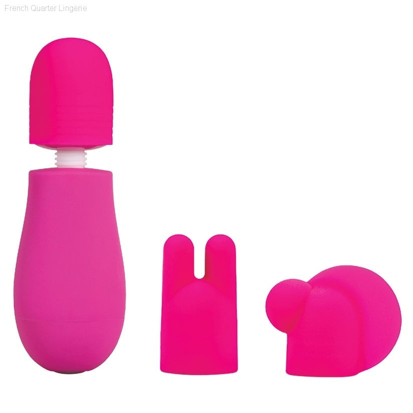 The Rose Petite Massage Wand kit comes through with rumbly vibes and more sensation options! This mini wand includes 2 stimulation heads, for exploring pinpoint or surround-sound clitoral stimulation. Cute and compact, Rose Petite's easy-grip handle and flexible neck help ensure comfortable use. Play with 10 deep vibration functions, solo or with a partner. The Rose Petite Massage Wand Kit is waterproof and easy to clean. Made of body safe materials: non-porous ABS plastic and interchangeable silicone sleeves. Free of phthalates and latex. Requires 2 AAA batteries (not included).