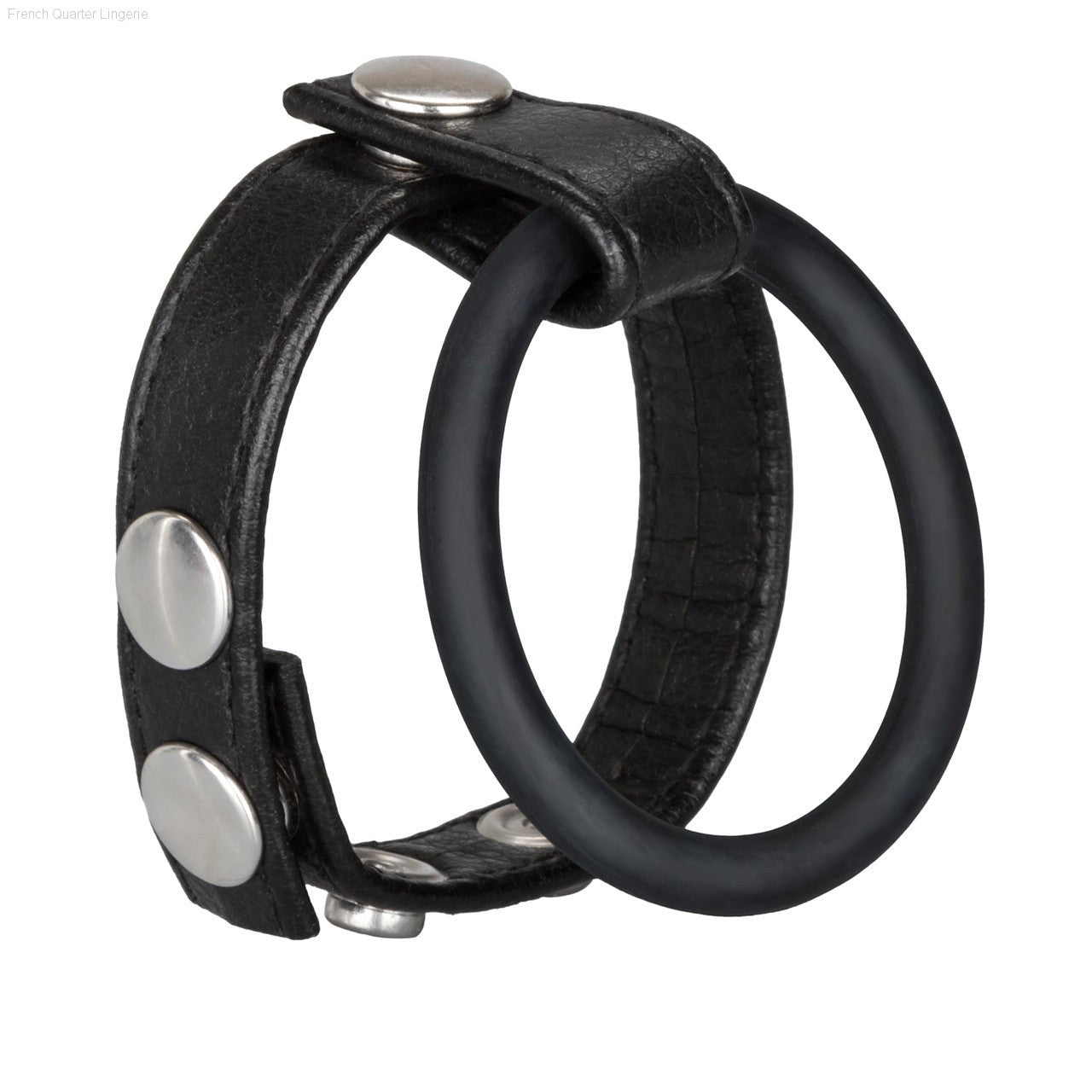 The enhancer comprises of a soft genuine leather strap, with steel plated snaps, and a flexible, smooth rubber ring. The erection enhancer is perfect for spontaneous, sensual exploration and instant self-gratification play. The smooth leather strap is designed to fit around the base of the scrotum, and is fully adjustable for ultimate erection support and tingling tension. The rubber ring slides over the penis to maintain performance and stamina. For increased sensitivity and maximum exotic pleasure, it is recommended that you always use a quality lube with this toy.