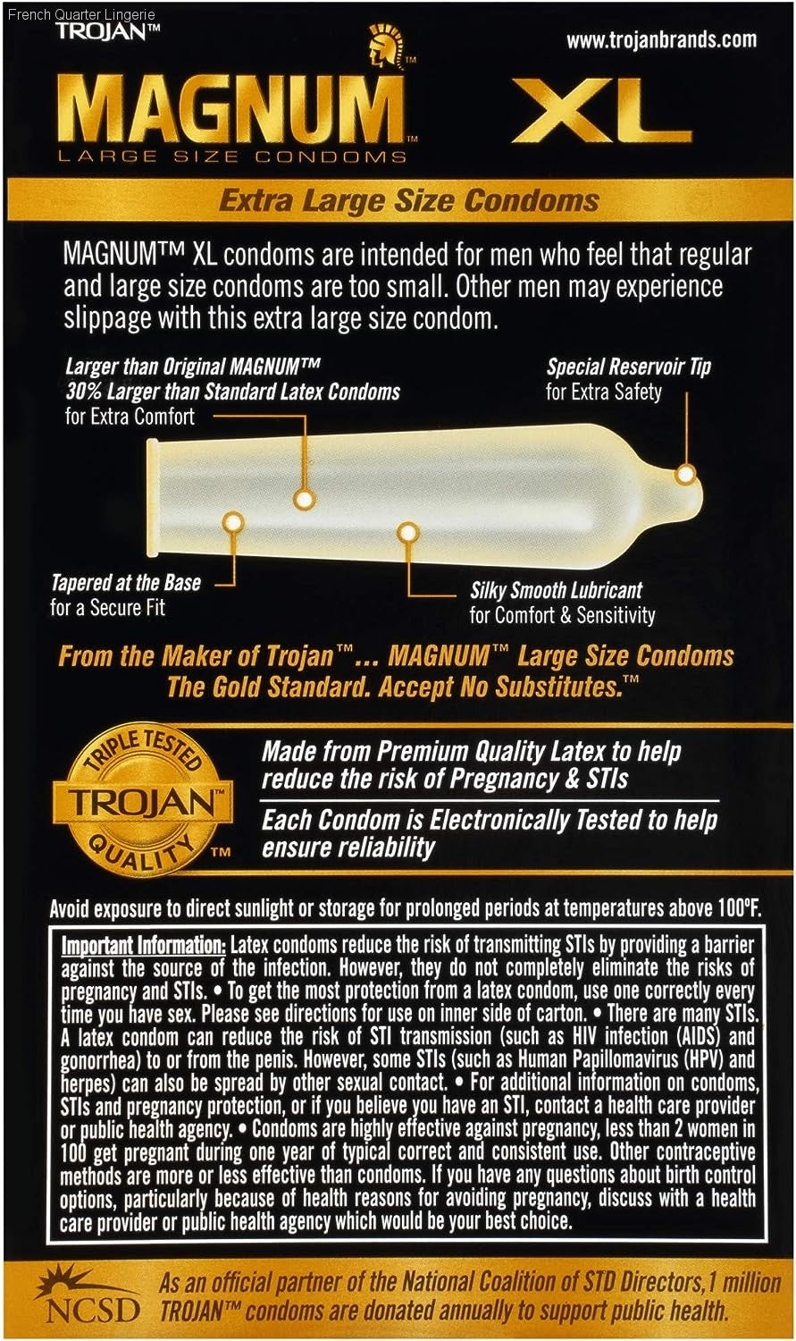 Our largest size condom. If you find that regular and large size condoms are too restrictive for you, Magnum™ XL is your gold standard. (Other men may experience slippage.) They’re larger than original Magnum™ large size condoms, and they’re 30% larger than standard condoms. The extra large size means you can finally feel the extra comfort you’ve been missing.
