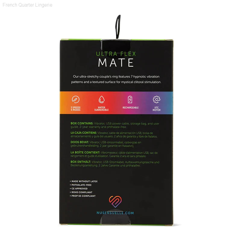 This ultra-stretchy couples' ring is designed to enhance the intimacy between partners. With 7 unique vibration patterns to amplify your natural rhythm and a textured surface for clitoral stimulation, the Bullet Ring will enhance your shared experience. Harness-friendly and compatible with other products such as the Joie, Remote Control Bullet Plus, and Ace. Whether you choose to customize your experience or use the ring as is, this couples' ring offers something to both parties involved.