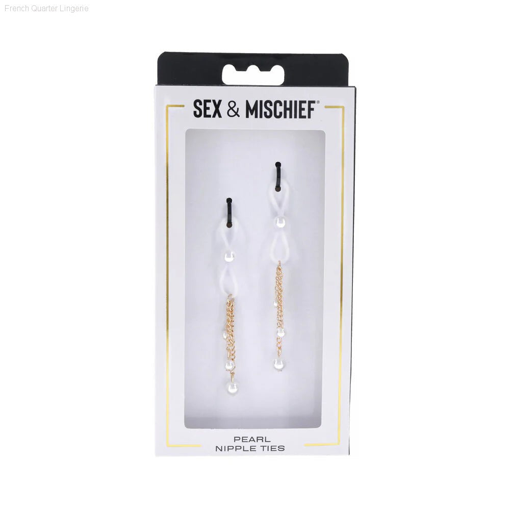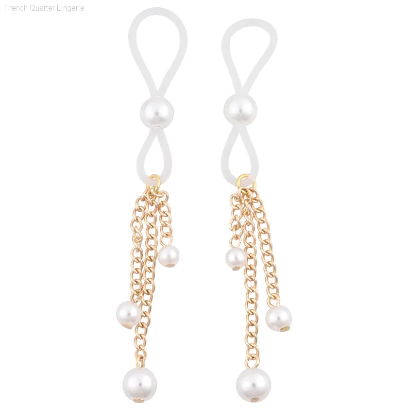 Indulge in the refined allure of our Pearl Nipple Ties - a captivating accessory that adds a touch of sophistication to any naughty occasion. With the pearls suspended by clear ties, they appear to effortlessly float on the body, creating a mesmerizing and ethereal effect. Let the Pearl Nipple Ties adorn your body like precious jewels and easily adjust the ties to add pressure and a touch of luxury and allure to your most cherished moments.Features: