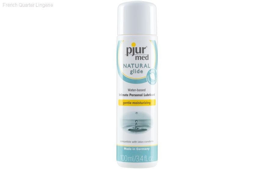 pjur® med NATURAL glide is a water-based personal lubricant, non-animal origin, with pure vegetable glycerin. It contains glycerin for additional moisture for dry skin and a lasting lubrication during sexual intercourse. Biocompatible with skin/mucous membrane. Made without synthetic colors, fats, paraffins, perfume or added flavors. For everyday use. Suitable for erotic toys.