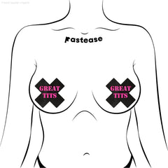 Plus X: Black with Pink 'Great Tits' Cross Nipple Pasties by Pastease®