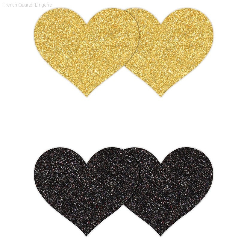 Pretty Pasties Glitter Hearts Black/Gold (2 Pack)