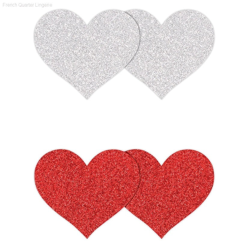 Pretty Pasties Glitter Hearts Red/Silver (2 Pack)