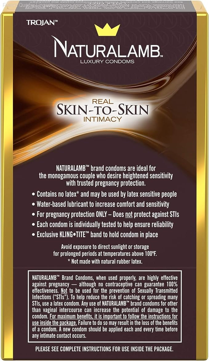 Try real skin-to-skin intimacy you have to feel to believe. Trojan™ Naturalamb™ luxury lambskin condoms, complete with a water-based lubricant, provide an incredibly natural feeling. They’re latex-free for latex-sensitive people and feature an exclusive Kling-Tite™ band to hold the condom in place. While they do help prevent pregnancy, sheepskin condoms don’t prevent STIs, so these are ideal for monogamous couples.