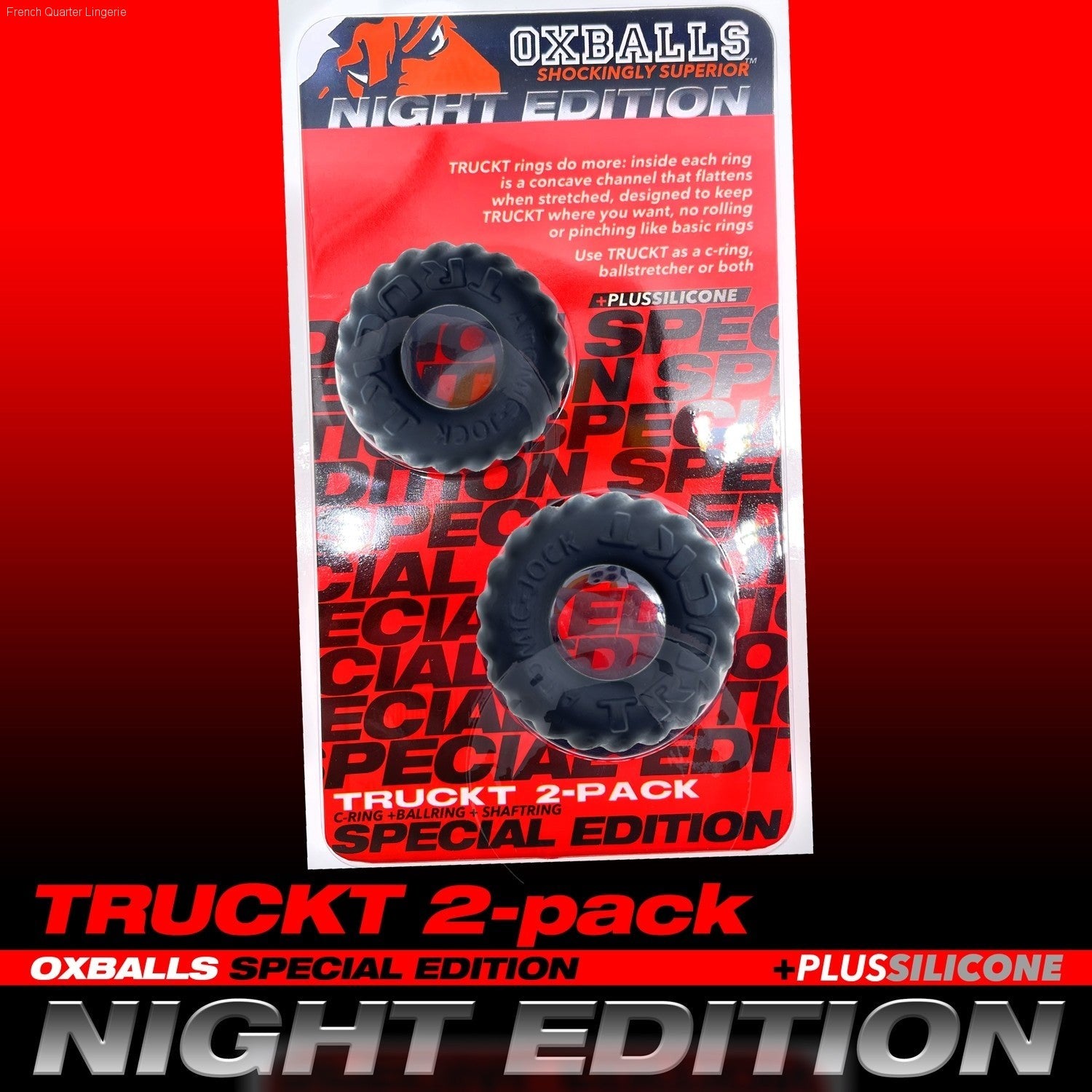 TRUCKT is a convenient 2-pack of versatile wear cockrings from OXBALLS. Each set contains two different sized rings that can be worn as a shaft, ball or cockring.