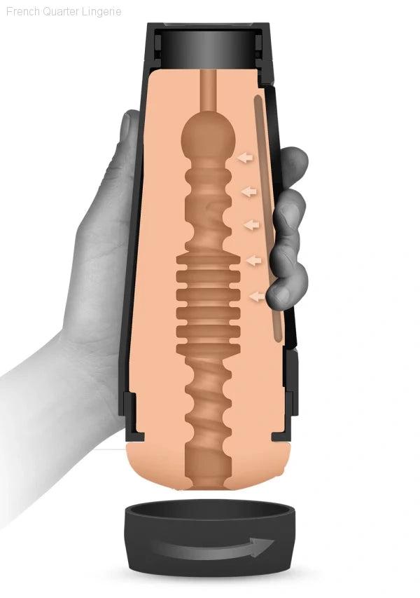 Unlike other hard case stokers on the market, our unique squeeze plate design allows you to precisely control the pressure while stroking. Airtight end cap twists to control suction. Loosen cap to allow airflow and decrease suction. Tighten cap to create intense suction while you stroke. A strong exterior case and screw-on top keep it clean, discreet and convenient for travel.