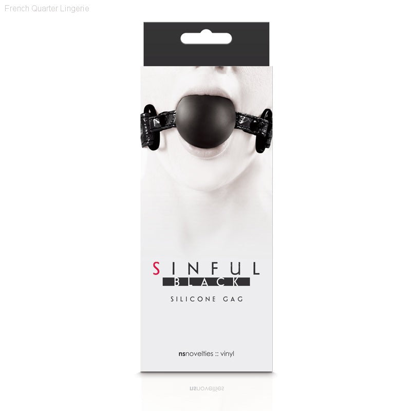 Sinful Soft Silicone Ball Gag is made of smooth, body-safe silicone and fits effortlessly into the mouth, providing a comfortable bite. An attractive embossed vinyl strap with neoprene lining provides durability and comfort for extended play sessions. Available in pink and black.