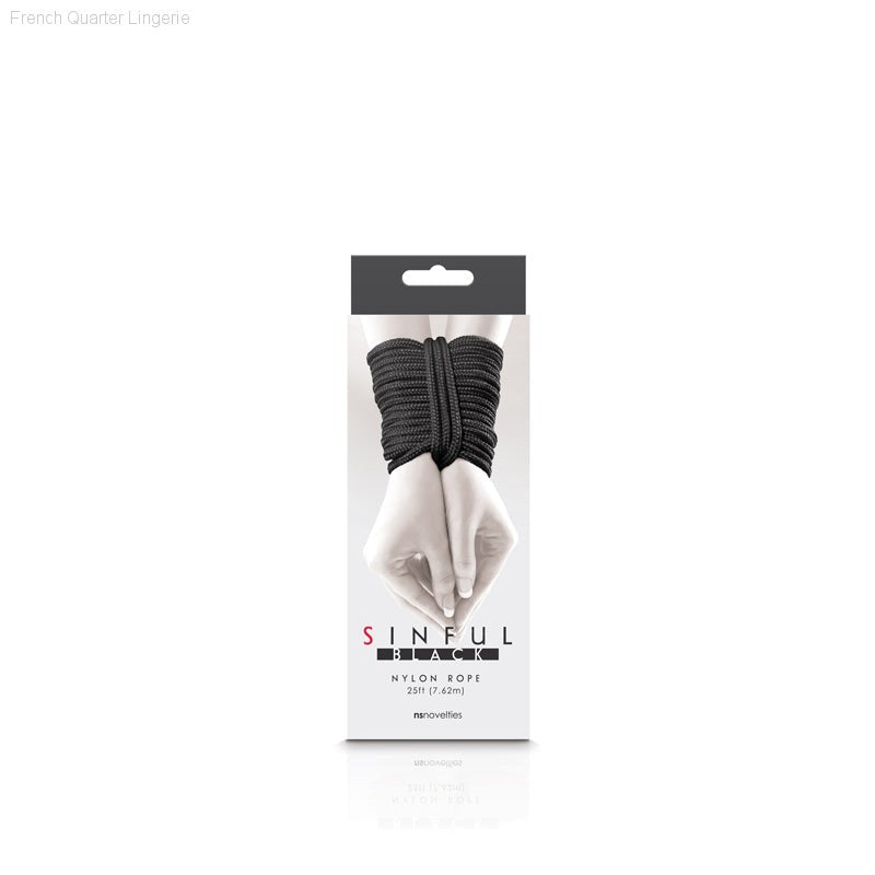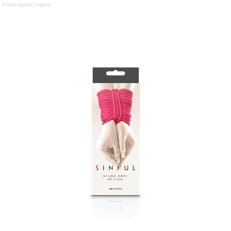 Sinful Nylon Rope is 25-feet of solid-braided sensual bondage rope. Soft and durable with maximum flex, it's perfect for rope bondage newbies and experts alike. Available in pink and black.