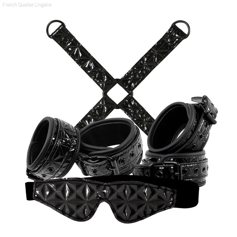 Everything needed for an evening of exhilarating BDSM fun is inside The Sinful Bondage Kit, an upscale, ready-to-go collection of exquisite restraints for both the novice and enthusiast. Available in colors Midnight Black and Fuchsia, the kit includes wrist and ankle cuffs, hogtie, and blindfold, all even-stitched and neoprene-lined for added comfort during long play dates. All Sinful items are black anodized for durability and feature nickel-free hardware. Take home The Sinful Bondage Kit from NS Novelties and unleash the fantasies within.