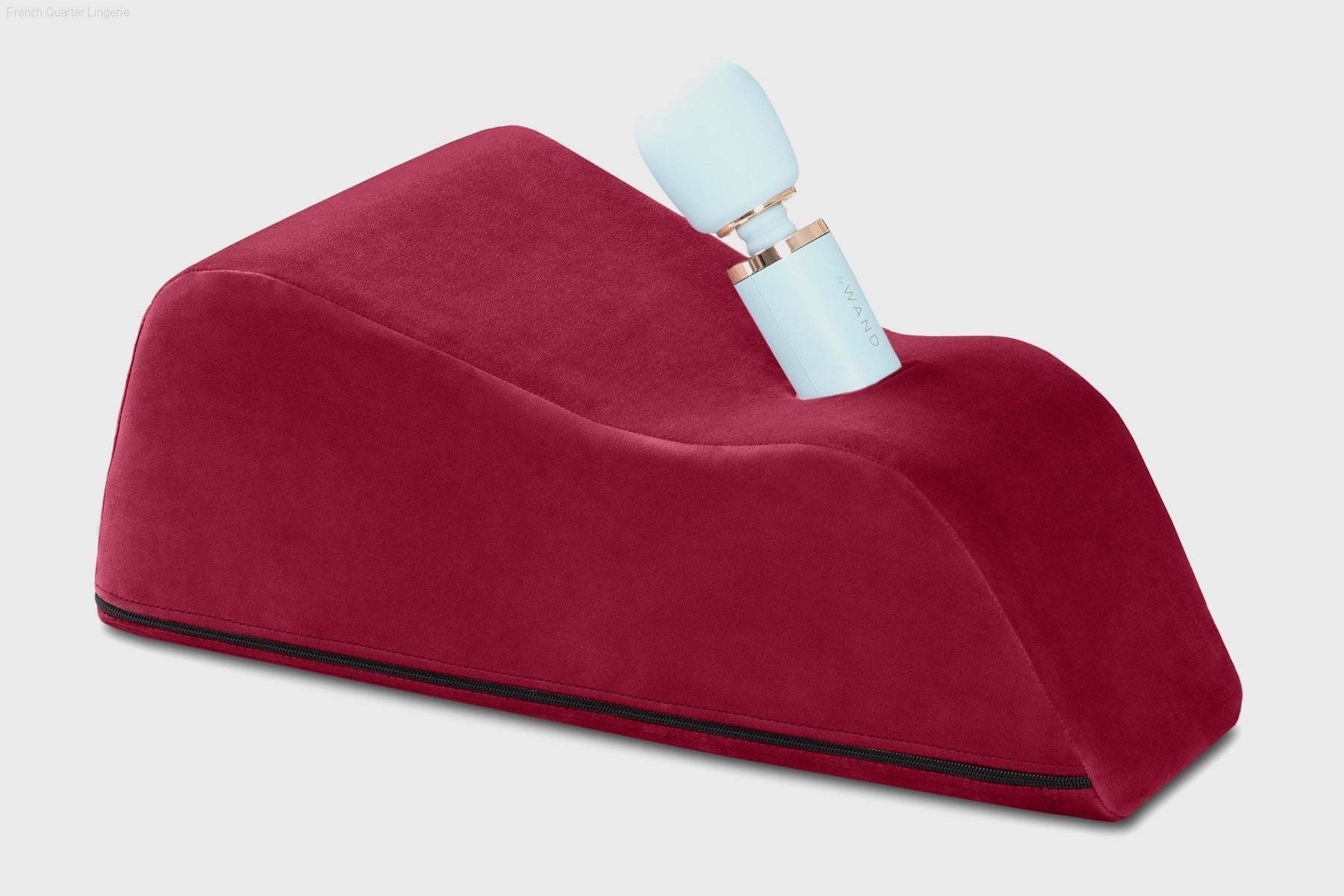 Ergonomically designed to be paired with a Hitachi Magic Wand, the Wanda Toy Mount has a tapered and undulating form that comfortably cups your body. It also offers support in a multitude of enchanting positions and gives you completely hands-free access to your Magic Wand. This toy mount's narrow body is perfect for straddling, and the height adds lift and easy access in standing or laying down positions, making it ideal for couple's play. The soft velvish cover is available in two colors to suit any castle's decor. The cover is machine washable and has a waterproof liner underneath. The Wanda will definitely put a spell on you!